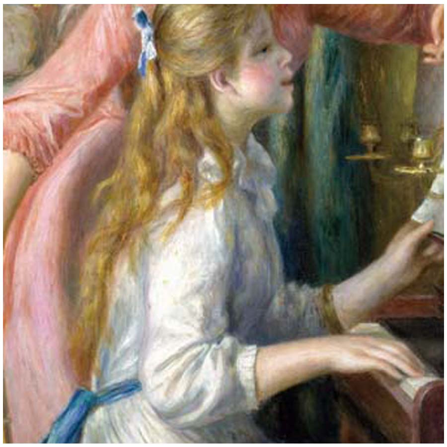 リュクサンブール美術館の依頼によって、1891年末からルノワールは、ピアノを楽しむ二人の少女を、ほぼ同サイズで6枚描き始めた。同時代の詩人ステファヌ・マラルメは、この作品を「成熟期のもっとも自由で、いかにもじっくりと落ち着きのある作品と評している。