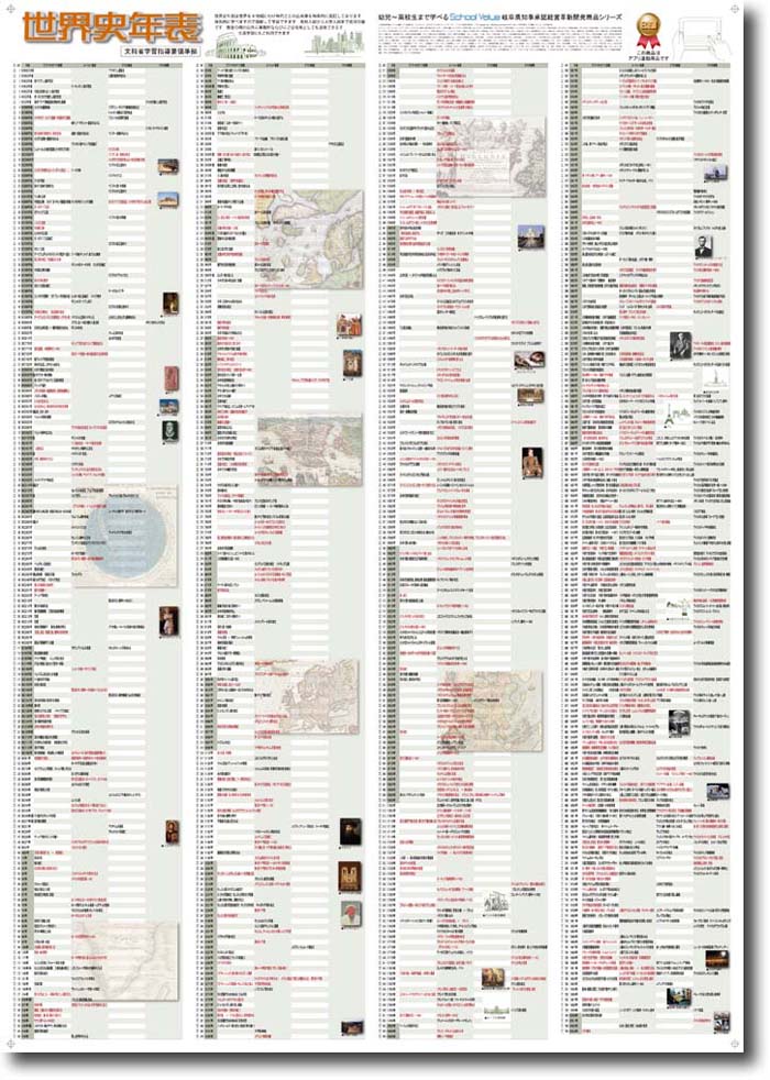 世界を4地域にわけ時代ごとの出来事を時系列に表記