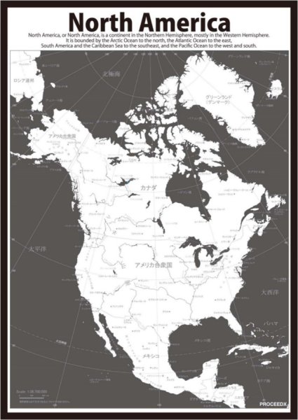 PROCEEDX美しい世界地図 北アメリカ 学習ポスターミニマルマップ フレーム付きA4サイズ日本製1252
