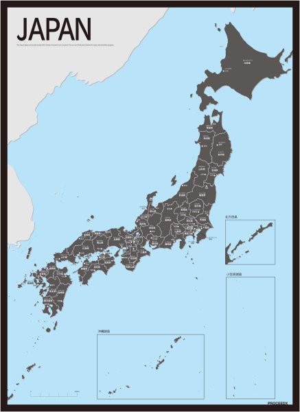 PROCEEDX美しい日本地図 書き込み自由 パステルカラーブルー2 学習ポスターミニマルマップ フレーム付きA2サイズ日本製 影付き1313 [pro-1313]