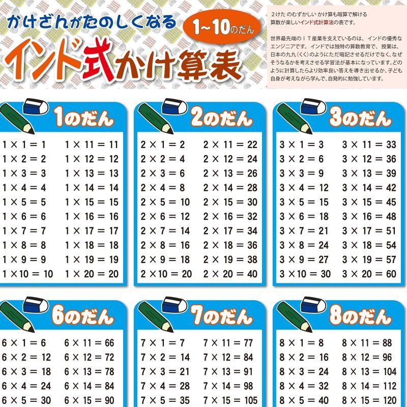 算数が得意になる掛け算表です 世界最先端のIT産業をささえているのは、インドの優秀なエンジニアです