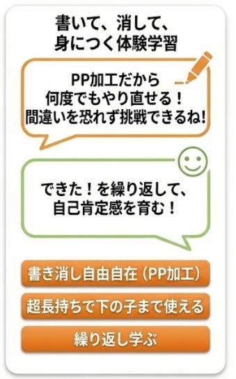 ・書いて消せるため、練習にも対応