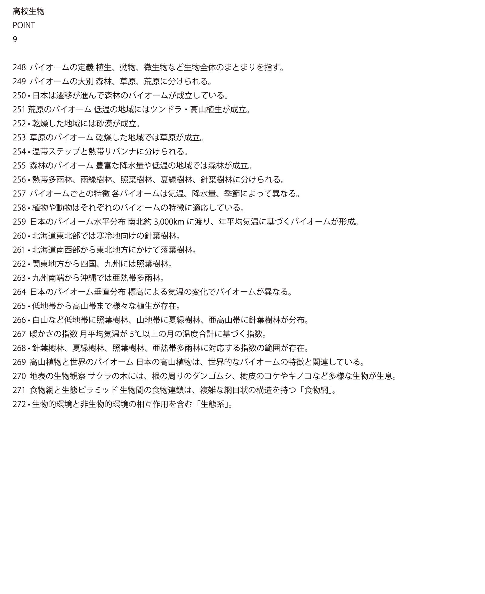 3. 図表を用いたわかりやすい説明: 図表やイラストを豊富に活用し、視覚的に理解しやすい工夫がなされています。 □ 全体として 生物の各分野を幅広くカバーし、受験者が確かな知識と問題解決力を養えるように設計されています。