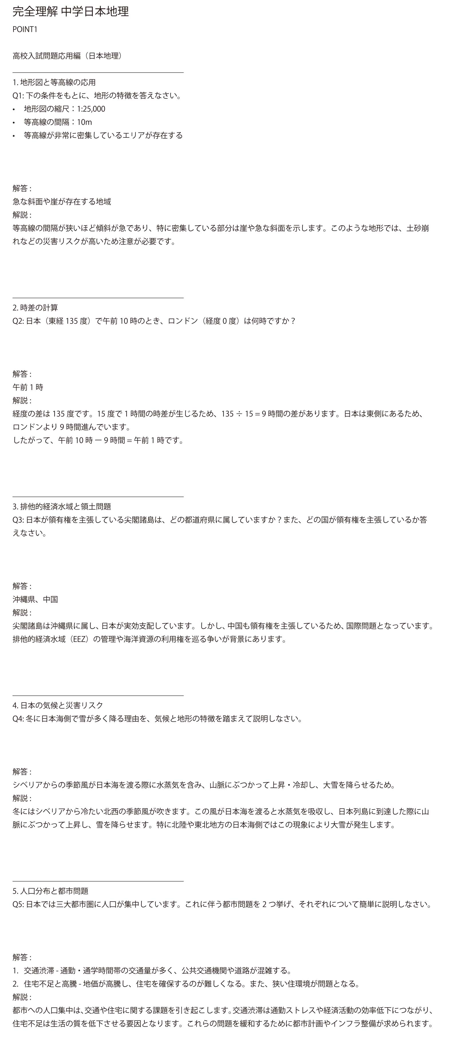「完全理解 中学日本地理」-日本地理学習の決定版
