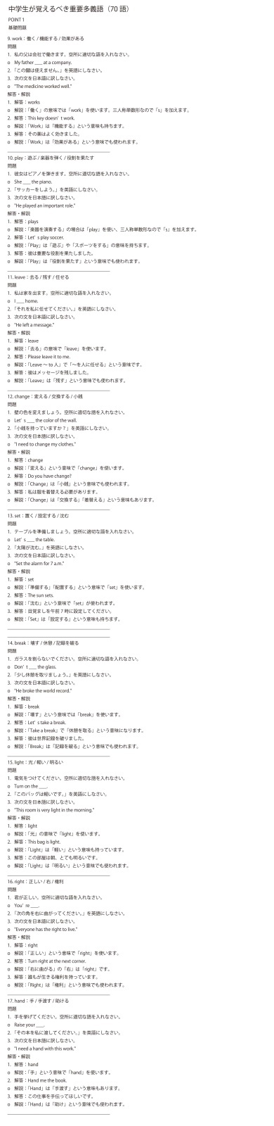 中学生が覚えるべき重要多義語(70語)(1)基本 [gux-4343]
