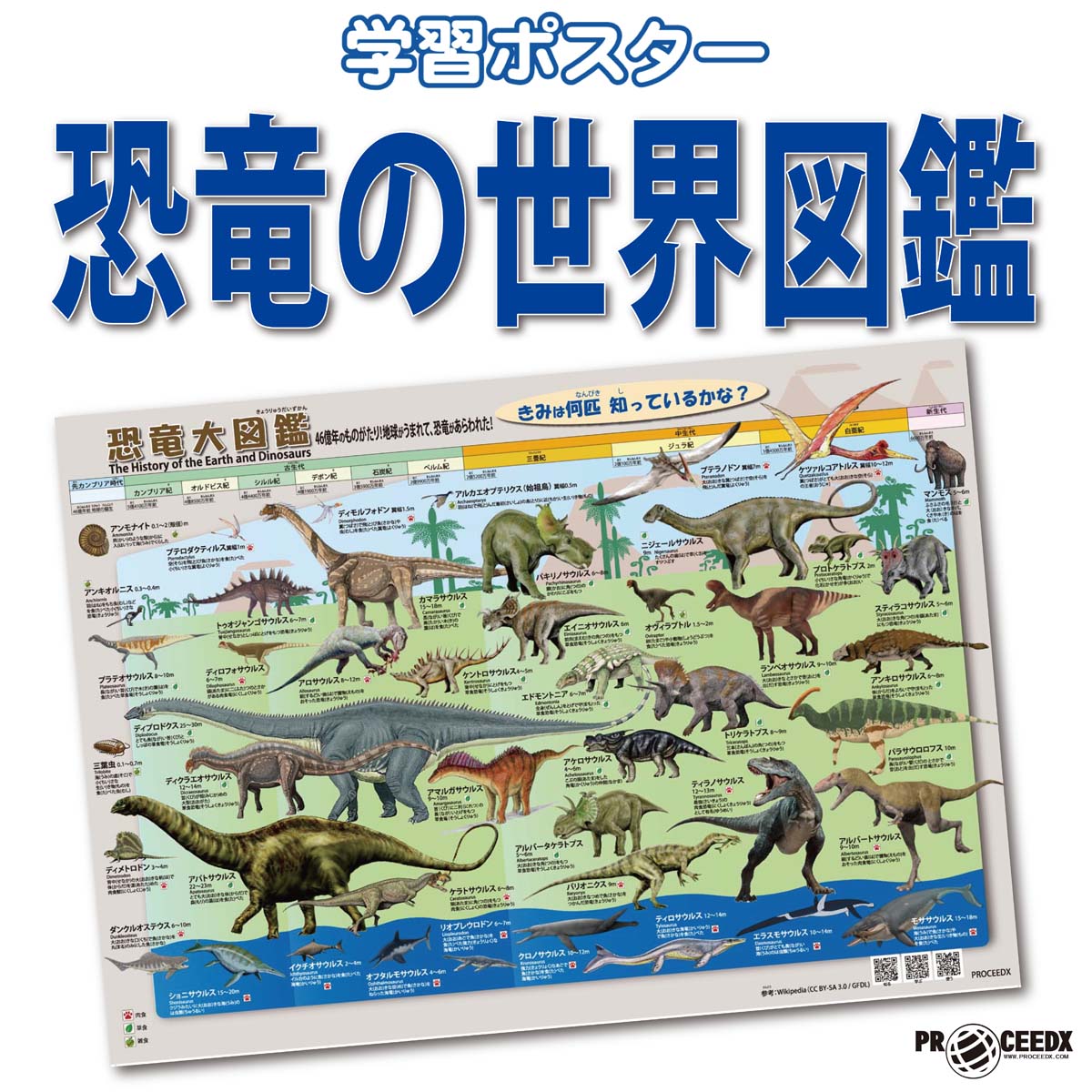 PROCEEDX【最新バージョン版】恐竜の世界図鑑 A2判 お風呂ポスター|ジュラ紀・白亜紀・三畳紀の代表恐竜を時代順に図解|小学生向け学習ポスター(耐水仕様・日本製)1583 [pro-1583]