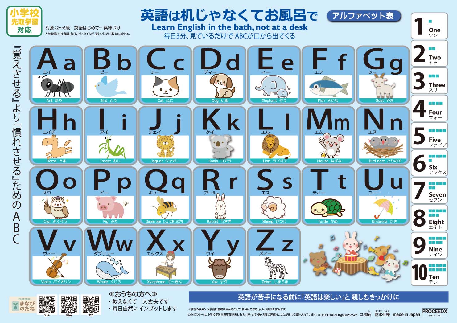 【小学校準備】お風呂で学ぶ 学習ポスターA4サイズ(とけい・ABC・ひらがな・ローマ字)4点セット 防水 proceedx1612 [pro-1612]