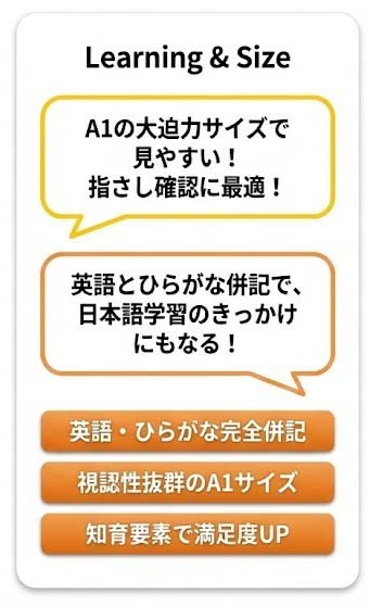 ? 【日本語学習にも最適】 全ての地名に「ひらがな」と「英語」を併記。日本文化に興味を持つ外国人観光客にとって、日本語(ひらがな)を学ぶきっかけにもなる知育・学習要素を兼ね備えています。