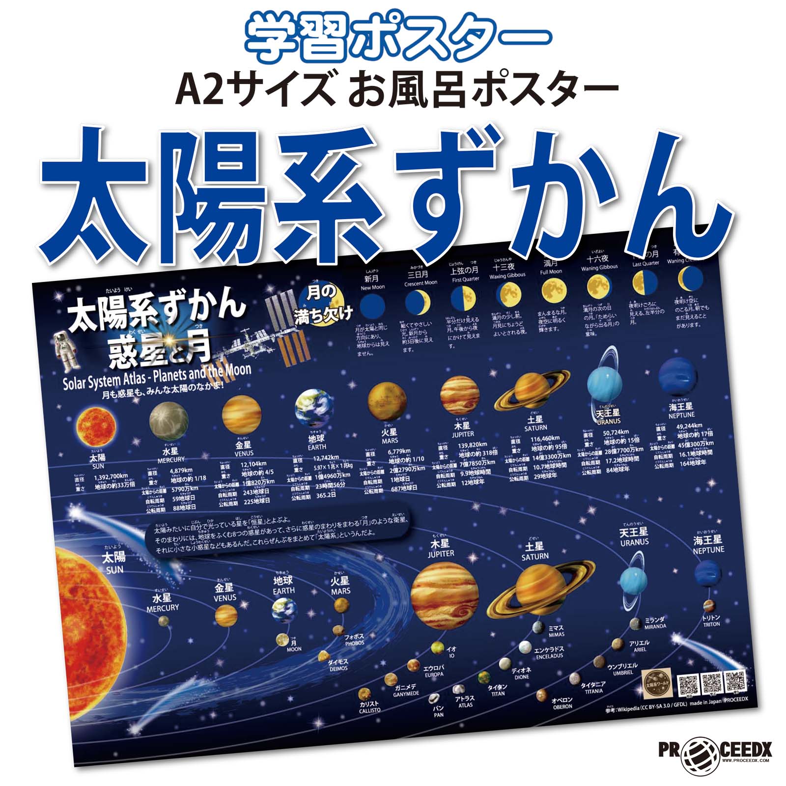PROCEEDX【最新バージョン版】太陽系ずかん A2判 お風呂ポスター|惑星と月の図解入り・宇宙のふしぎを楽しく学べる|小学生向け学習ポスター(耐水仕様・日本製)1582 [pro-1582]